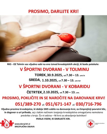 NAPOVEDUJEMO jesensko krvodajalsko akcijo